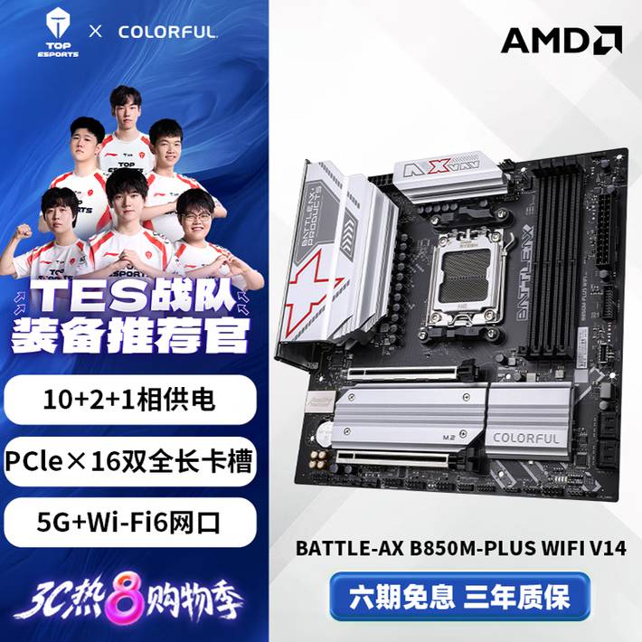 七彩虹(Colorful)BATTLE-AX B850M-PLUS WIFI V14 黑刃主板 支持CPU 7800X3D/9800X3D/9600X(AMD B850/socket AM5)